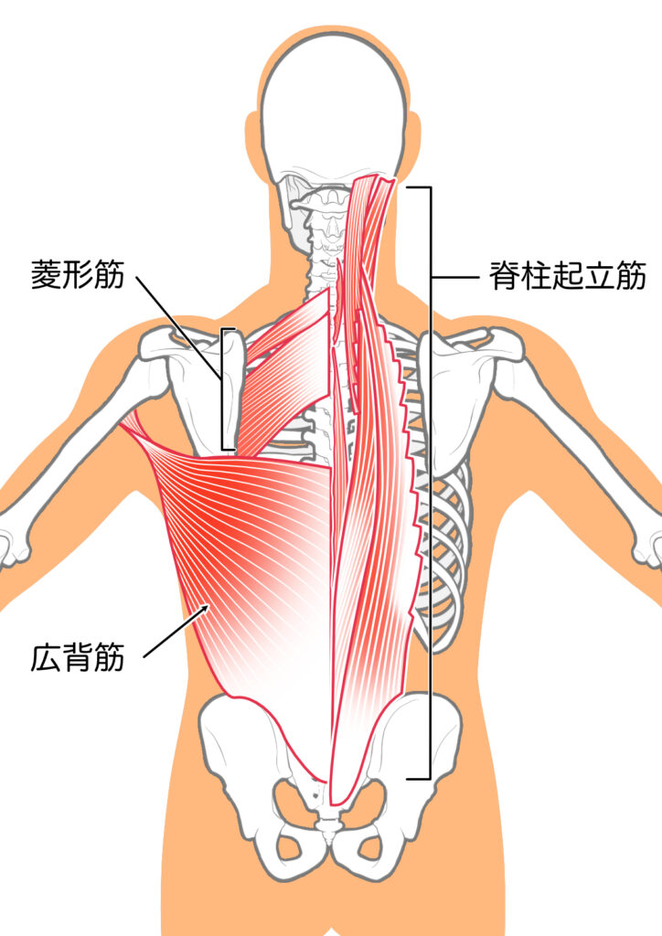 背骨まわりには多くの筋肉(広背筋・脊柱起立筋など)と肋骨を支える筋群があり、これらが急に引き伸ばされたり、逆に強く縮まると痛みが生じます。