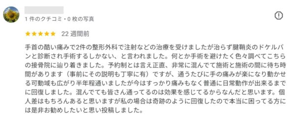腱鞘炎 口コミより抜粋